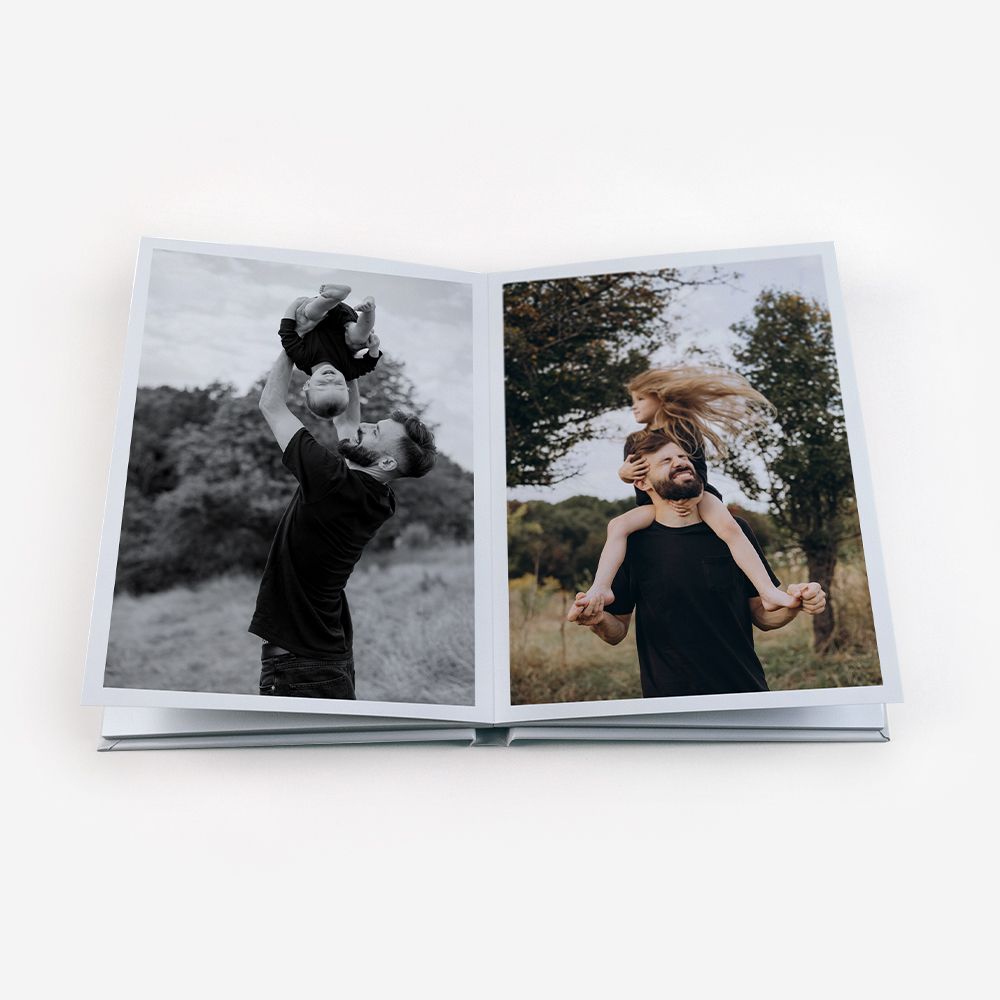 Os Álbuns de Fotos Dreambooks apresentam uma abertura panorâmica, com a possibilidade de colocar uma foto em destaque ocupando duas páginas. Desta forma, desfrutarás de uma visualização perfeita das tuas fotos, sem cortes ou partes escondidas.